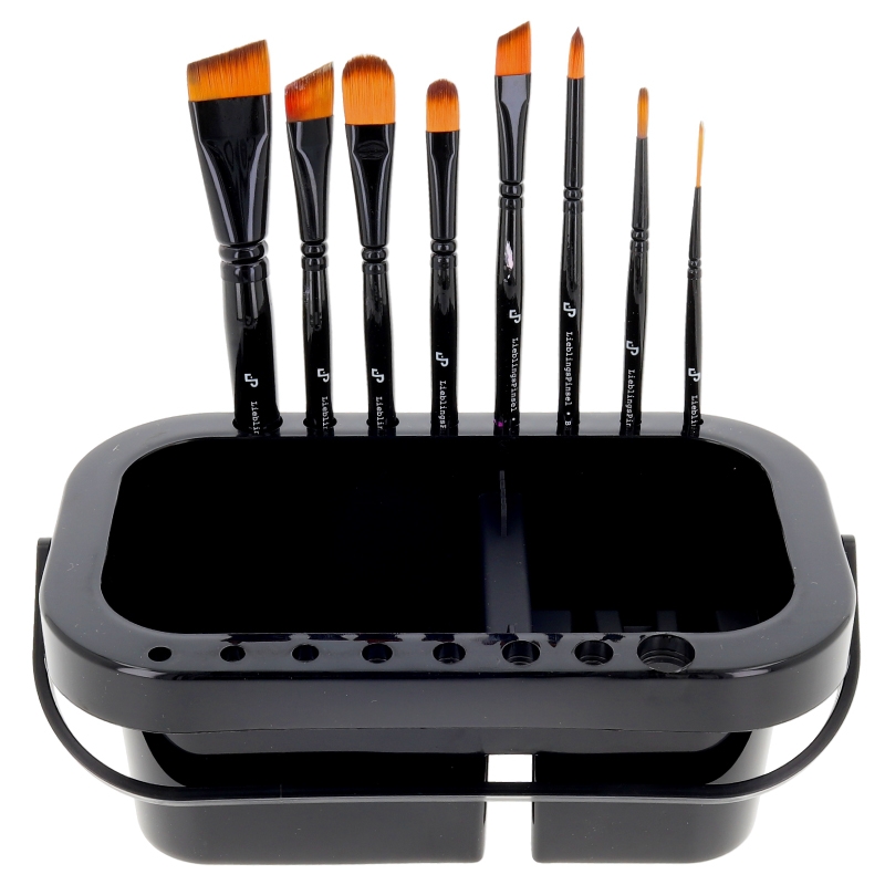 Pinselwaschtopf /schwarz mit 3 Kammern und Deckel