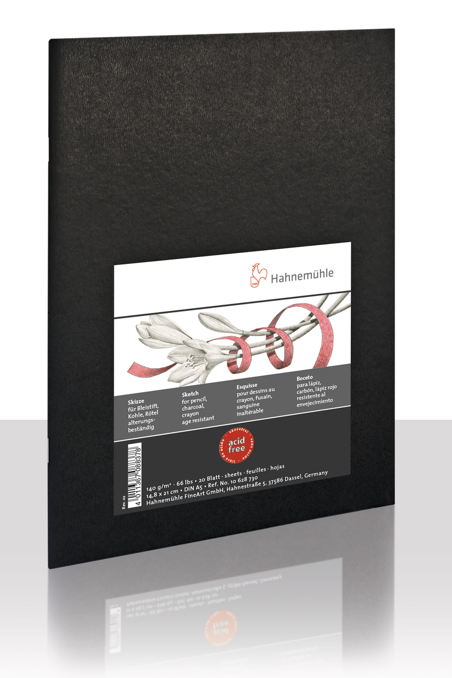 Mit einem feingemasertem Einband ist dieses schwarze Skizzenbuch ein täglicher Begleiter für alle, die schlichte Eleganz mögen. Flexibel und schlank passt es auch in deine Tasche. Auf dem leicht rauen naturweißem Papier können deine Zeichnungen mit Bleistift, Kohle und Rötel sowie Bunt- oder Farbstiften entstehen. Mit 40 Seiten bietet es dir viel Platz zum Festhalten deiner kreativen Ideen. Es ist in den Formaten DIN A5 und A4 lieferbar und wie alle Hahnemühle Papiere vegan, säurefrei und alterungsbeständig.